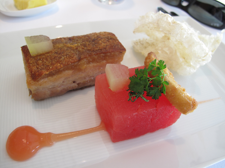 Kurobuta sweet pork belly (the best I have EVER tasted) with pickled watermelon and crackling