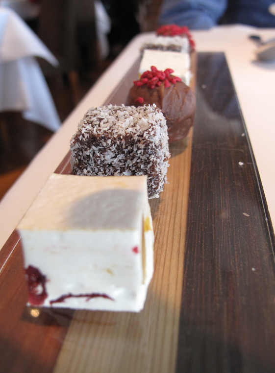 The chocolate dish with the foam was vanilla tasting, and the top chocolate part had salt crystals- and the chocolate round part had raspberries through it. I didn’t get to taste a whole lot of that one as…well Mr Chocolate stands by his name 🙂