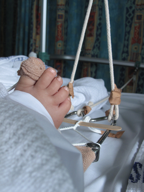 6. Speedy recovery for the little monkey…particularly those so sweet little toes. (That traction devise looks almost like a toy, made up of paddle pop sticks. I am sure it looks like an instrument of torture for your little baby though. I guess it needs to be so tiny that paddle pop sticks are about the right size!)