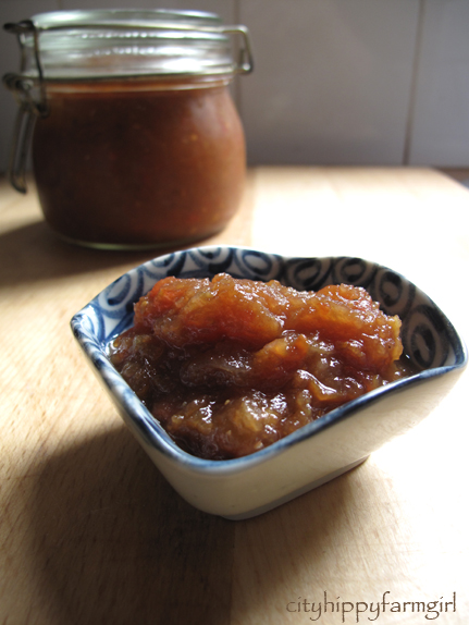 Flicking through my CWA Preserves book I did think vaguely about waiting until I had all the ingredients to one of these recipes. However, seeing as though there wasn’t a lot riding on the chutney. No flights needed to be caught, no accommodation needed to be checked in to and the chutney wouldn’t be going anywhere except the table. I didn’t. I had a bag of tomatoes waiting to be used and I had chutney on my mind. I just couldn’t decide what flavours to play with. Which recipe would I like? Actually none of them were grabbing me. They all sounded good, but they weren’t quite the flavours I had in mind. They weren’t my flavours. So with a close of the book, a little pause and a think, I got cracking.