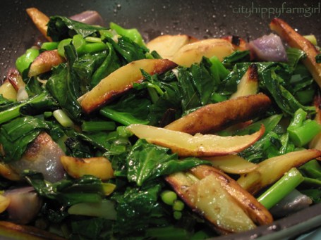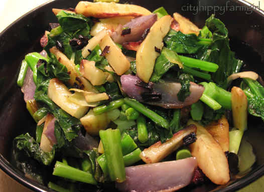 diced onion, knob of ginger, and a couple of cloves of garlic