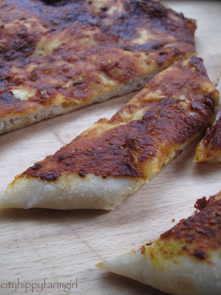 I cooked this up with the obligatory chicken and yogurt dish, but I also had some left over and sourdough on the go. So Tandoori Flat Bread it was.