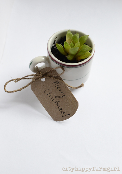 3. A succulent in a vintage teacup I still say is a visual winner. Get creative.