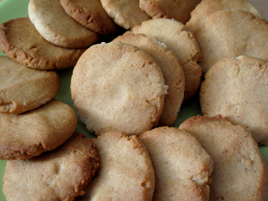 Cream the butter, honey, vanilla and then add flour. Lightly roll in a ball, then squish down a little. Bake at 180C until light golden.