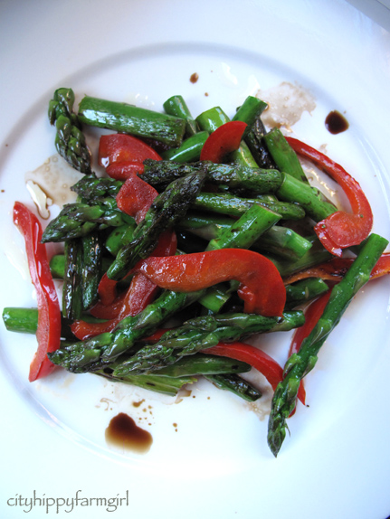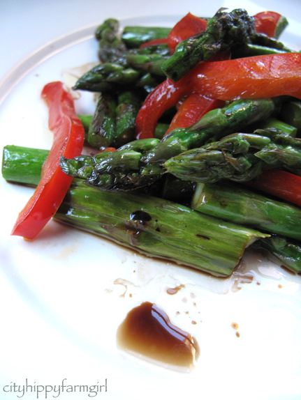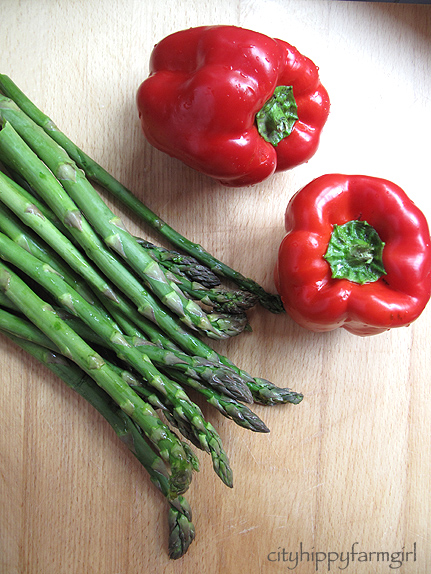 Summer eating is getting kick started here, and I’ve been lucky enough to get some wonderful locally grown asparagus and capsicums lately. When the vegetables are already tasting delicious and as they should be, I don’t want to do much to them, there is no need. Simple cooking means dinners ready in a few minutes, and I’m definitely up for that.