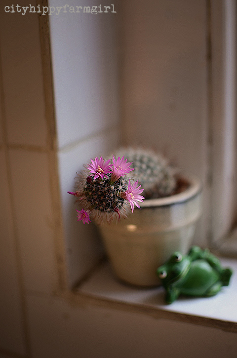Petite fleurs, teeny tiny ones that didn’t last long on my usually quite unexciting kitchen bench cactus.