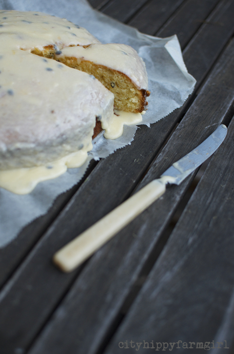 A crumbly chocolate cake with coffee icing this isn’t. If my mum wasn’t currently kicking up her heals at the moment in Europe I think I would have made this Passionfruit Cake for her instead. There is nothing fancy about it, just a simple cake that’s moist, not crazy sweet, really easy to make and not remotely like that dry old chocolate cake I used to make.