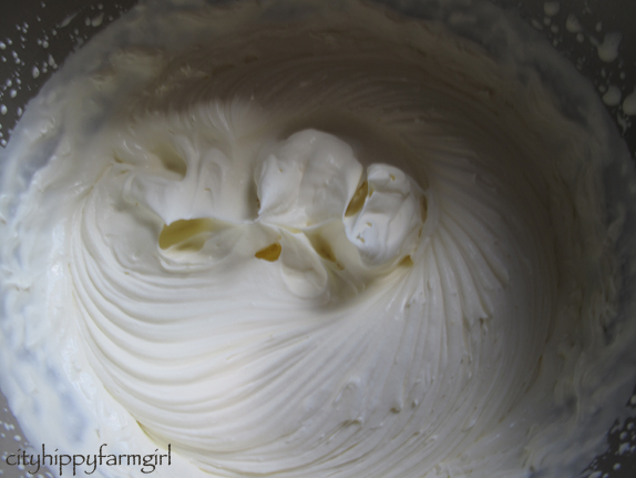 In a mixer, pour in a carton of cream. The best you can buy, (not thickened cream). Whip it….and keep whipping…
